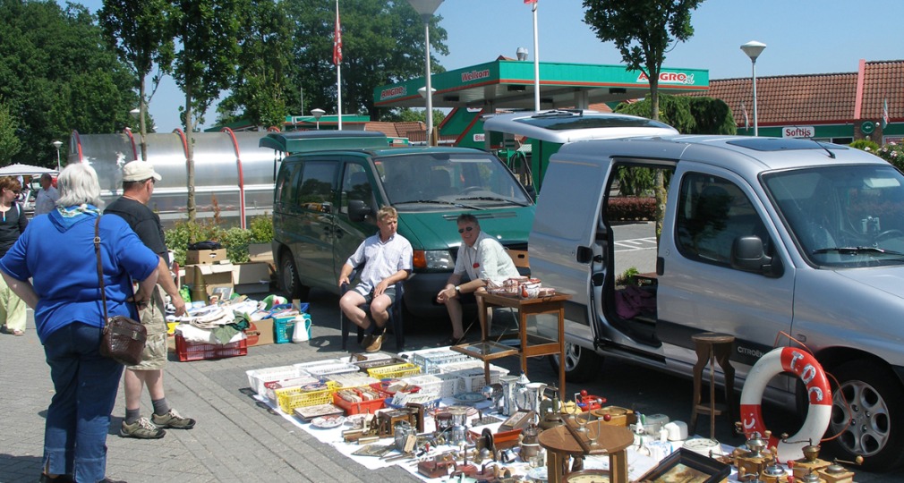 Kofferbakmarkt met uitsluitend tweedehands spullen en verzamelingen. Verkoop vindt plaats vanuit de auto, aanhangwagen of camper, vaak uitgestald op een kleedje ernaast.