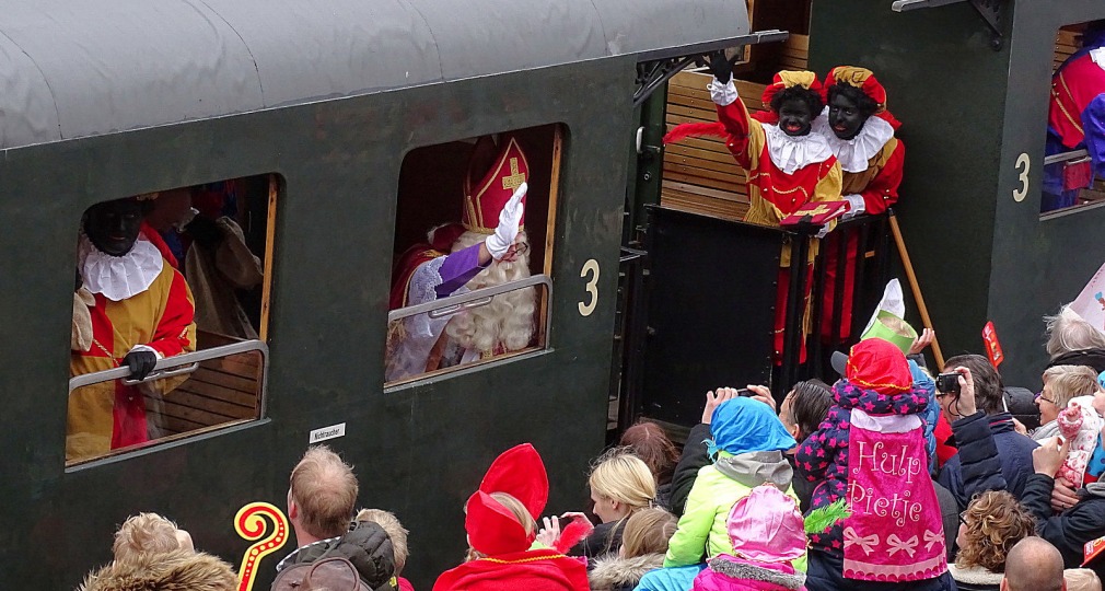 De Stoomtrein met daarin de Sint en zijn Pieten arriveert om 14.00 op station Museum Buurtspoorweg. Daar wachten burgemeester Welten, de Haaksbergse Harmonie en heel veel kinderen en ouders hen op voor een warm welkom in Haaksbergen.