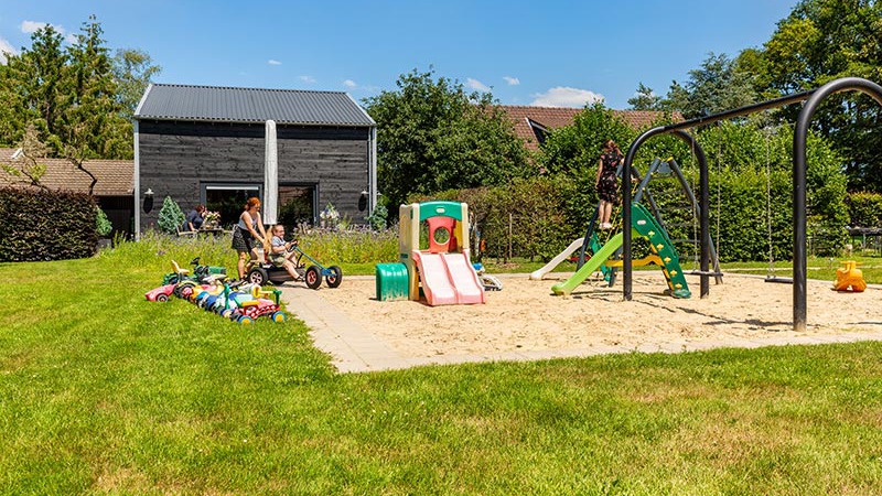 - speeltuintje met glijbaan, schommel, wipkip en speelzand