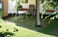 De boerderijcamping, gelegen achter de boerderij biedt plaats aan 25 caravans en enkele tenten. De plaatsen voor caravans en campers zijn verhard met graskeien, zodat u altijd op een goede ondergrond staat. De plaatsen zijn allen voorzien van elektra (6 amp), water en een vuilwaterafvoer. Aangrenzend aan het campingterrein bevindt zich een moderne sanitaire voorziening, met verwarming voor de koudere dagen. Kinderen zijn welkom op de camping, maar er zijn geen speciale faciliteiten. De camping biedt haar gasten graag rust.