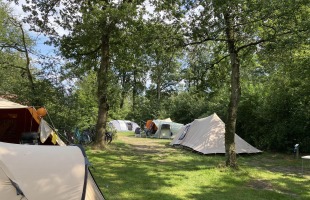 De 34 kampeerplaatsen voor tenten, caravans en vouwagens bevinden zich aan de rand van het park, tegen het bos aan. De plaatsen (minimaal 100m²) worden omringd door groen. Op het veld is een speeltuin. Het sanitairgebouw heeft een afwasruimte, toiletruimte, douches, aparte babyruimte en een chemisch toilet.