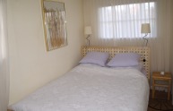 - Slaapkamer: Een tweepersoonsbed met dekbed.